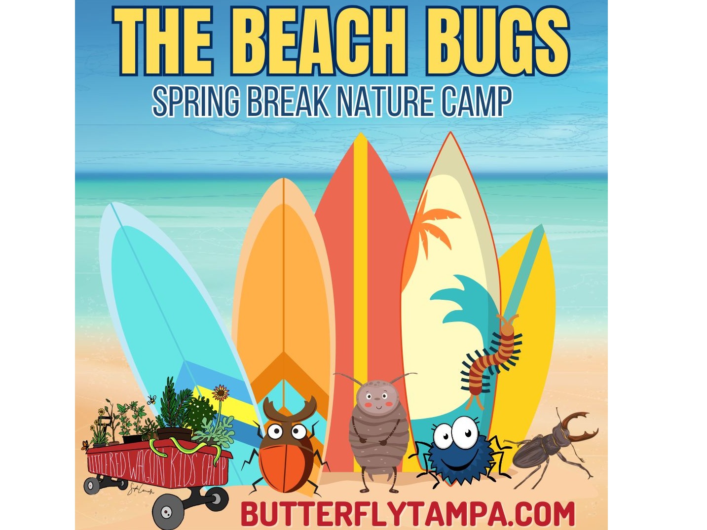 Spring break is a great time to learn about Beach bugs! Where the sands are hot, harsh, and constantly on the move. Yet here, where the shifting sands meet the gulf or ocean coasts of Florida, there’s an abundance of insects that make their homes there. These bugs have evolved to succeed in the sand. But survival in this merciless landscape is hard won! We will learn about bug adaptations to coastal sand environments, roles they play in these sandy environments, what they eat and so much more about their microworld! The Florida Aquarium will also be presenting their "No Bones About It" program which includes them bringing some common Florida invertebrates for the campers to see and touch up close. There will be theme related arts and crafts, guest appearances from our bug and animal ambassadors and each child will have the opportunity to release a butterfly into our garden. We will also visit our very own Bug bungalow, Nature Center and Butterfly garden where we have our very own sand dune to explore!